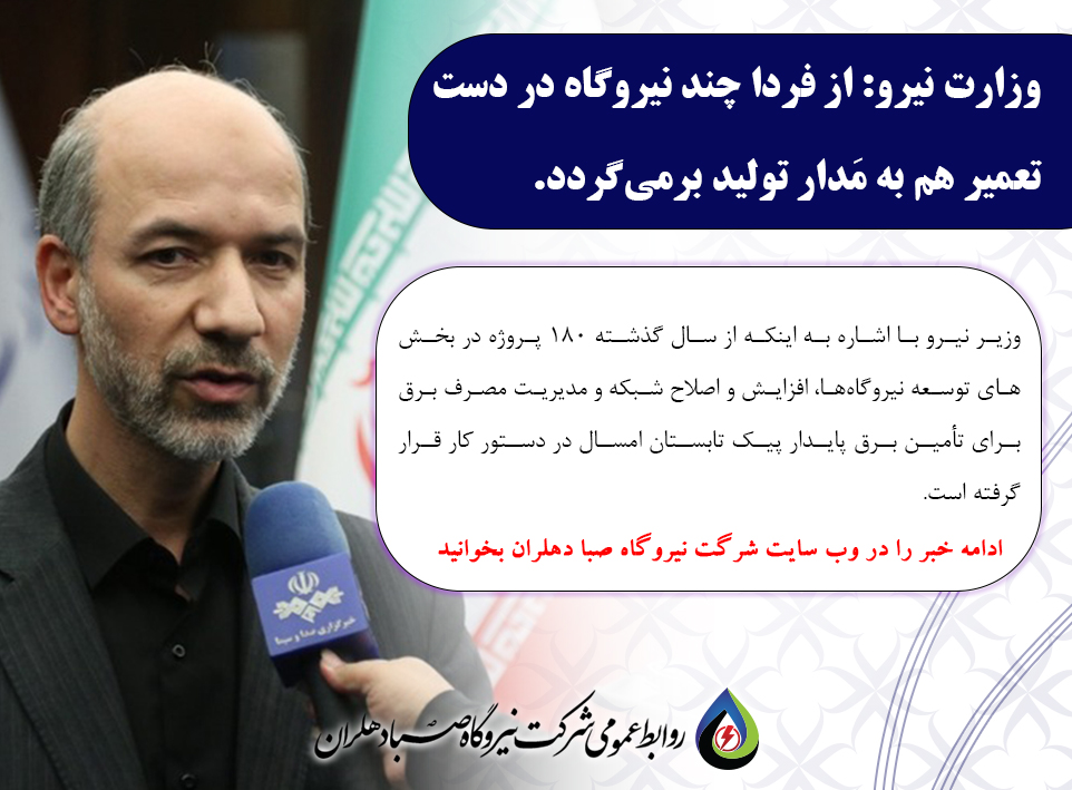 وزیر محترم نیرو با اشاره به اینکه از سال گذشته ۱۸۰ پروژه در بخشهای توسعه نیروگاهها، افزایش و اصلاح شبکه و مدیریت مصرف برق برای تأمین برق پایدار پیک تابستان امسال در دستور کار قرار گرفته است