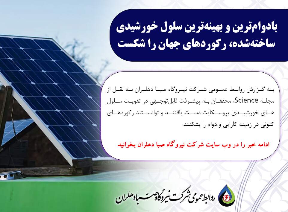 به گزارش روابط عمومی شرکت نیروگاه صبا دهلران به نقل از مجله Science، محققان به پیشرفت قابلتوجهی در تقویت سلولهای خورشیدی پروسکایت دست یافتند و توانستند رکوردهای کنونی در زمینه کارایی و دوام را بشکنند.