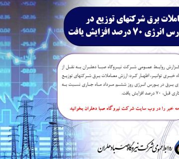 معاملات برق شرکتهای توزیع در بورس انرژی ٧٠ درصد افزایش یافت